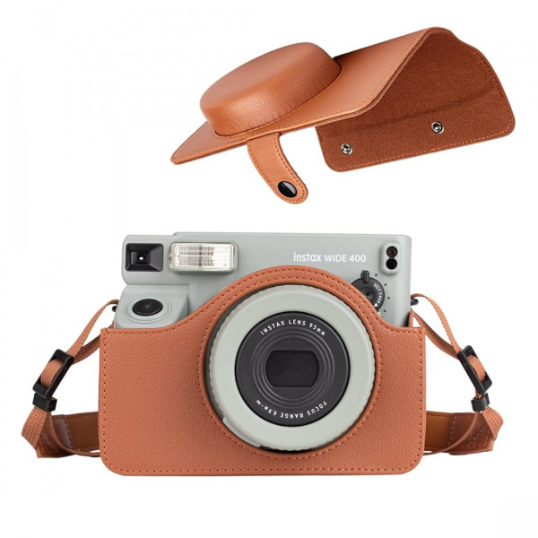 Удобный чехол для фотоаппарата моментальной печати Fujifilm Instax WIDE 400 коричневого цвета. Чехол снабжен плечевым ремешком и кнопкой-застежкой. Чехол надежно защитит ваш фотоаппарат от попадания влаги и пыли, убережет от царапин и сколов при падении.