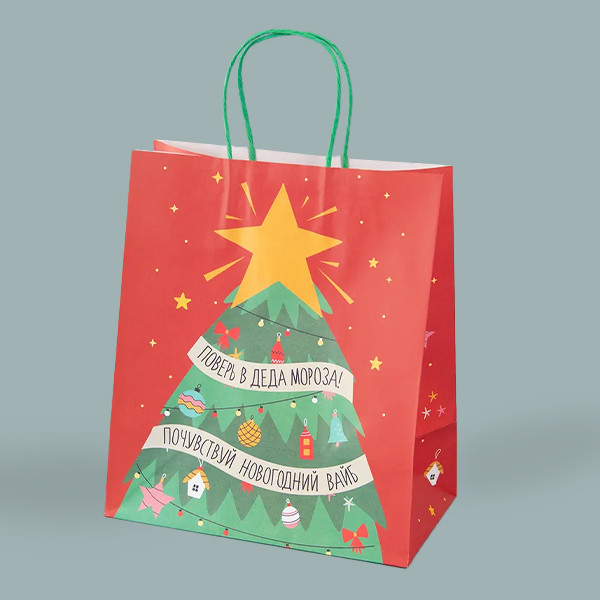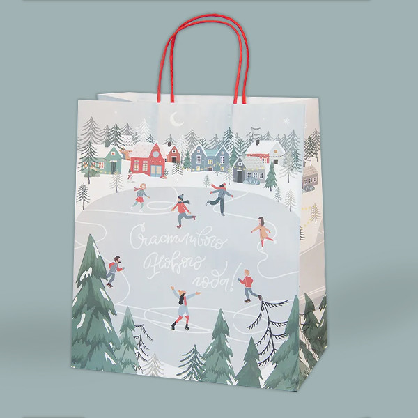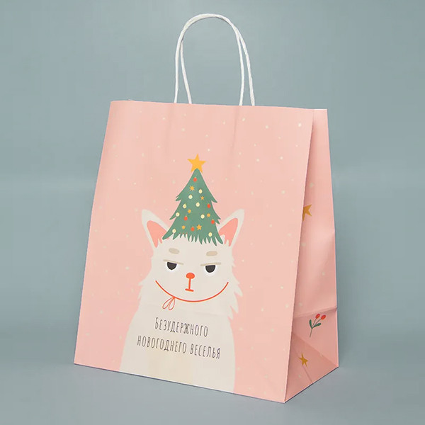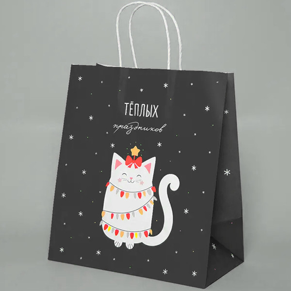 Подарочный бумажный пакет. Порадуйте своих близких подарком, заботливо упакованным в красивый бумажный пакет. Рисунок из ёлочек и снежинок, котов, изображенных на пакете, отсылает нас к старым добрым мультфильмам и дарит праздничное настроение.