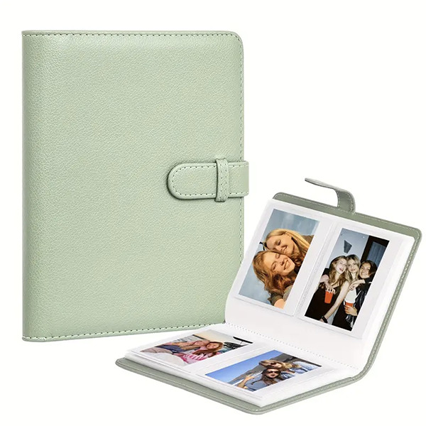 Фотоальбом Fujifilm Instax WIDE "Мятный" для больших фотографий для Polaroid 600/636, а также Supercolor, Impulse и тд. Также подойдет для фотографий Instax WIDE 300 / 210 . Альбом рассчитан на 80 фотографии формата 8,8 x 10,7 см, размер самого альбома 20 х 15 см. Обложка альбома сделана из качественной экокожи.