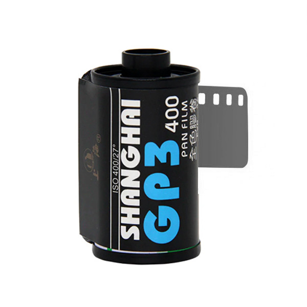 Панхроматическая черно-белая высокочувствительная фотопленка Shanghai GP3 400. Высоконтрастная и зернистая, с узнаваемым рисунком.