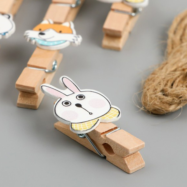 Деревянный держатель для фото "Зверята" выполнен в виде миниатюрных прищепок с изображениями животных: поросенка, медвежонка, панды, лисы и зайчика. В комплекте джутовая веревочка. Такой держатель украсит ваш интерьер, особенно детскую комнату ребенка, и выполнит такую полезную функцию как хранение и поддерживание фотографий в нужном вам месте пространства в идеальном для восприятия вертикальном положении.