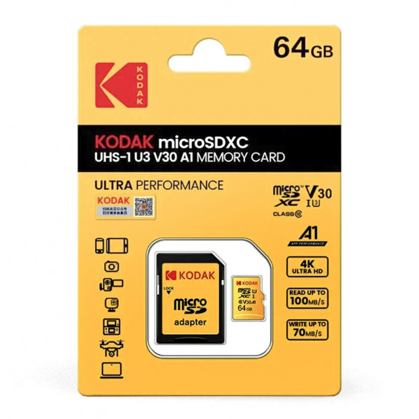Новая производительная карта памяти Kodak Micro SD размером 64 ГБ. Идеально подходит для цифровой фотокамеры Kodak Charmera, а также для других современных цифровых фотоаппаратов и других устройств.