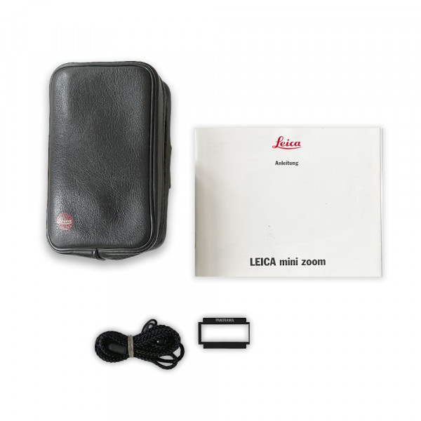 Что входит в комплект: винтажная фотокамера Leica Mini Zoom, ремешок на руку, оригинальный чехол, насадка на объектив "панорама", инструкция, коробка, гарантийный талон.