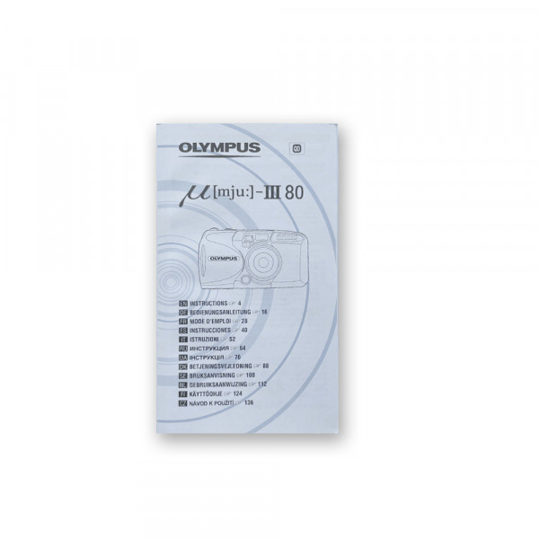 Что входит в комплект: фотокамера Olympus Mju III 80, инструкция, мешочек, коробка, ремешок на руку, гарантийный талон.
