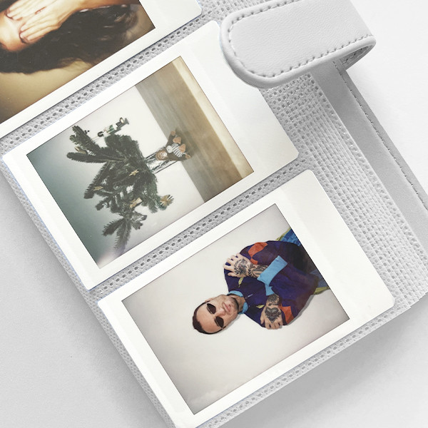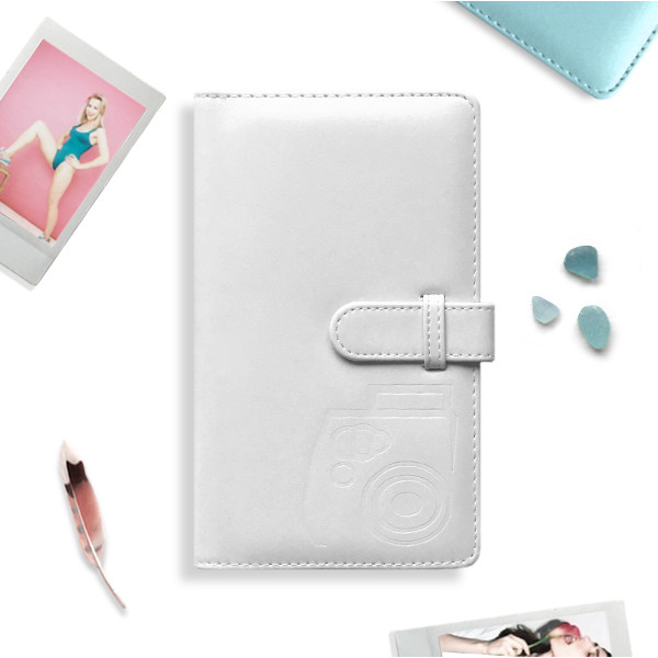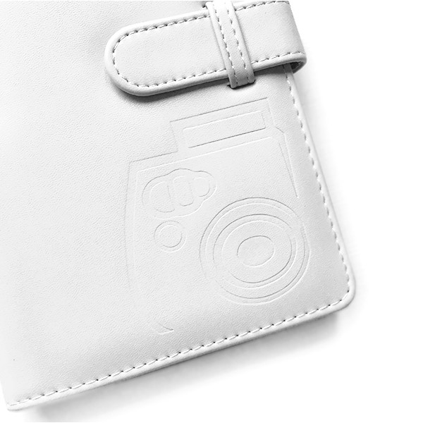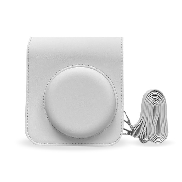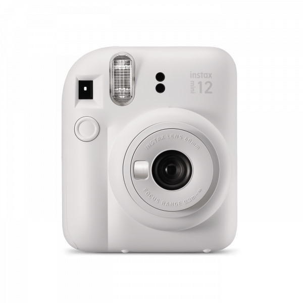 Подарочный набор для поклонника моментальной фотографии: фотокамера Fuji Instax Mini 12 цвета Clay White (белый фарфор), цветная кассета на 10 кадров, белый альбом на 108 фотографий, белый чехол с ремешком.
