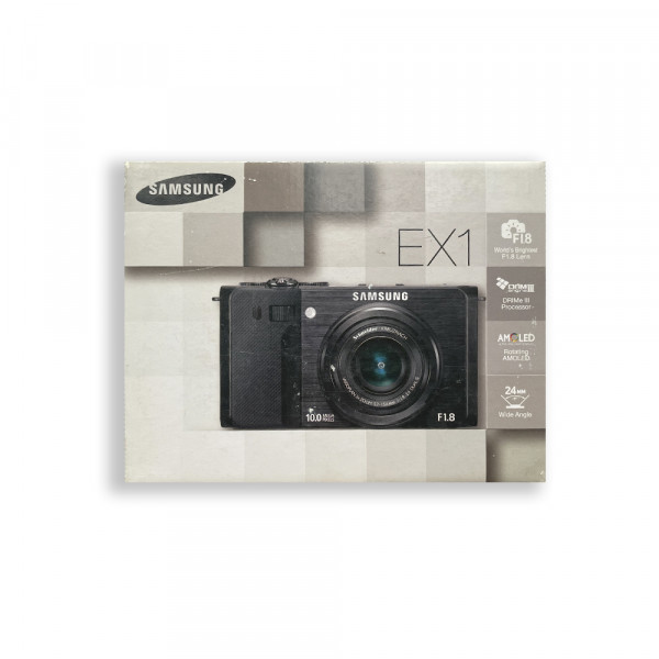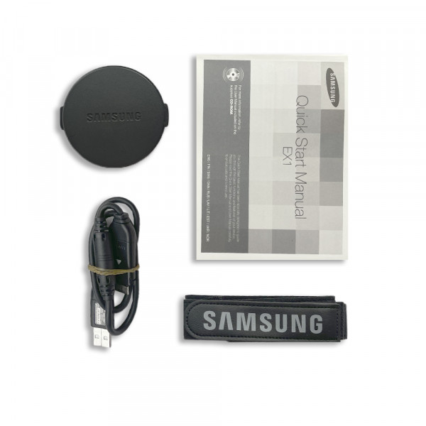 Что входит в комплект: винтажная диджитал камера Samsung EX-1 (10 pix.), карта памяти, зарядное устройство, ремешок на руку, инструкция, крышечка на объектив, гарантийный талон, коробка.