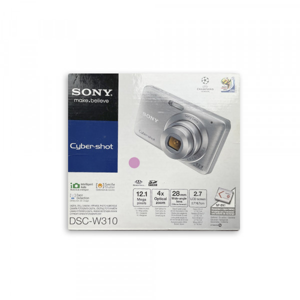 Что входит в комплект: винтажная диджитал камера Sony Cyber-shot DSC-W310 (pink) (12.1 pix), карта памяти, мешочек, ремешок на руку, зарядное устройство, гарантийный талон, инструкция, коробка.