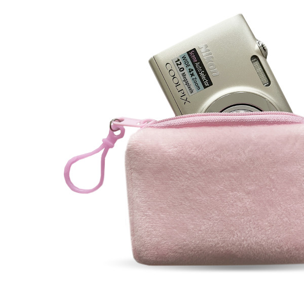 Чехол для цифровой мыльницы на молнии розового цвета.